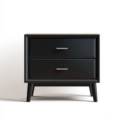 Bedside Table Wooden Two-Drawer 50x40x60 cm - Black - Modern